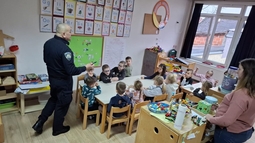 U našem vrtiću proteklih smo dana imali posebnog gosta, prometnog policajca koji je posjetio djecu u objektima Duga i Kapljica. Posjet je bio ispunjen učenjem, razgovorom i brojnim zanimljivim primjerima