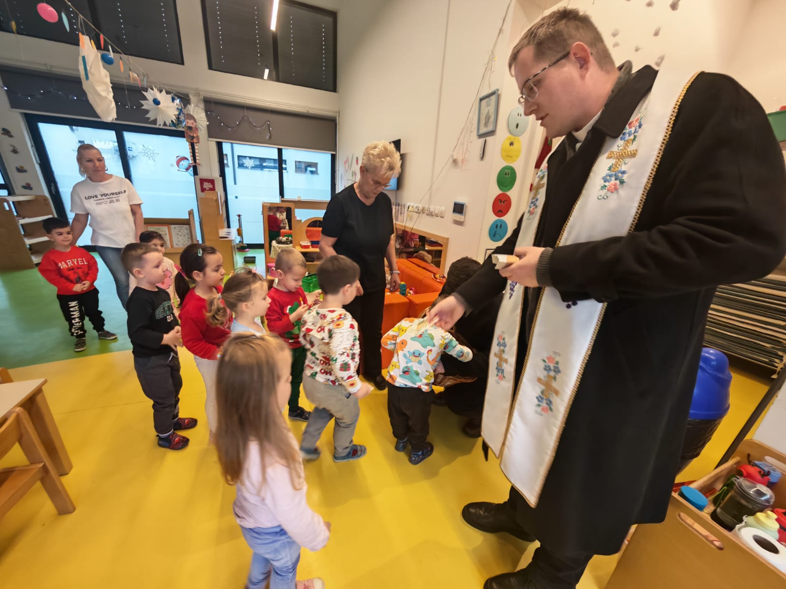 U tjednu prije Božića u četvrtak, 18. prosinca 2025. godine, u objekt Sunce u posjet je došao župnik vlč. Damir Ceković iz Župe Preobraženja Gospodnjeg u Petrinji i održao tradicionalni blagoslov skupina objekta Sunce (Točkice, Lavići, Loptice, Kružići i Gumbići) i obližnjih skupina u sklopu Područne škole Češko selo (Mačići i Balončići). Ovaj svečani čin dio je običaja i tradicije naše domovine, grada, obitelji, ustanova i poduzeća, a ističe važnost blagdanskog ozračja i zajedništva među najmlađima. Uz blagoslov, velečasni Damir djecu je obradovao slatkišima te im poklonio prigodne sličice, donoseći im dodatni dašak blagdanskog veselja.