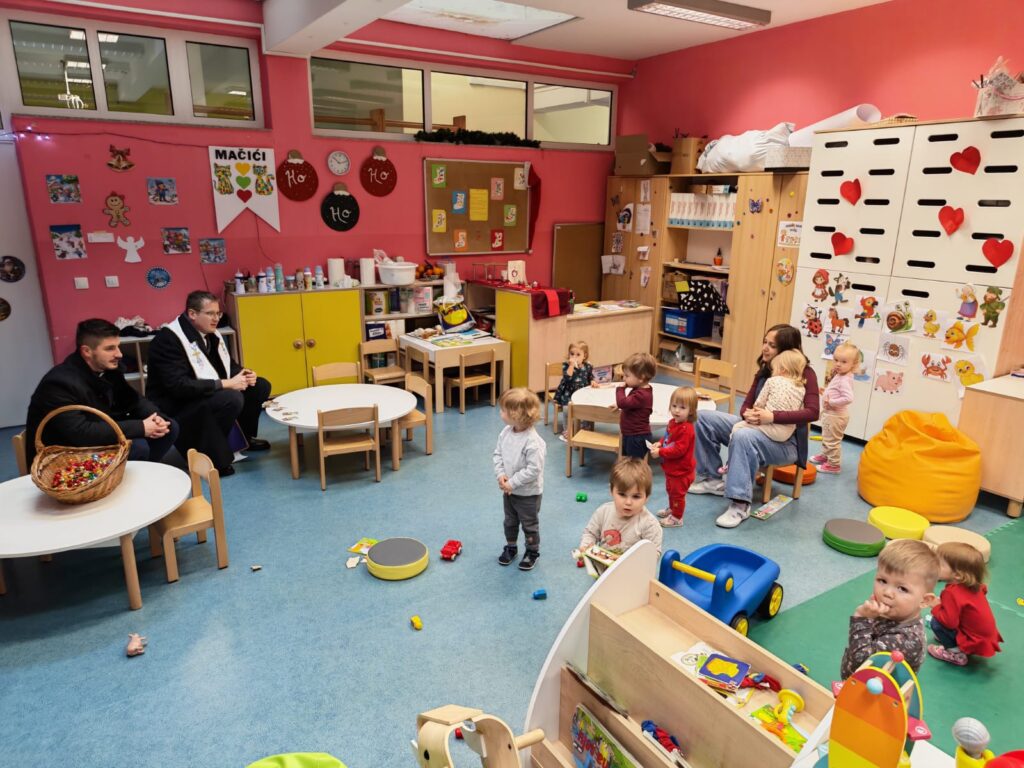 Ovakvi susreti doprinose očuvanju vrijednosti koje se prenose generacijama te potiču duh zajedništva i radosti u vrtiću, dok djeci pružaju priliku da osjete posebnost božićnog razdoblja. Zahvaljujemo se župniku na blagoslovu Vrtića!
