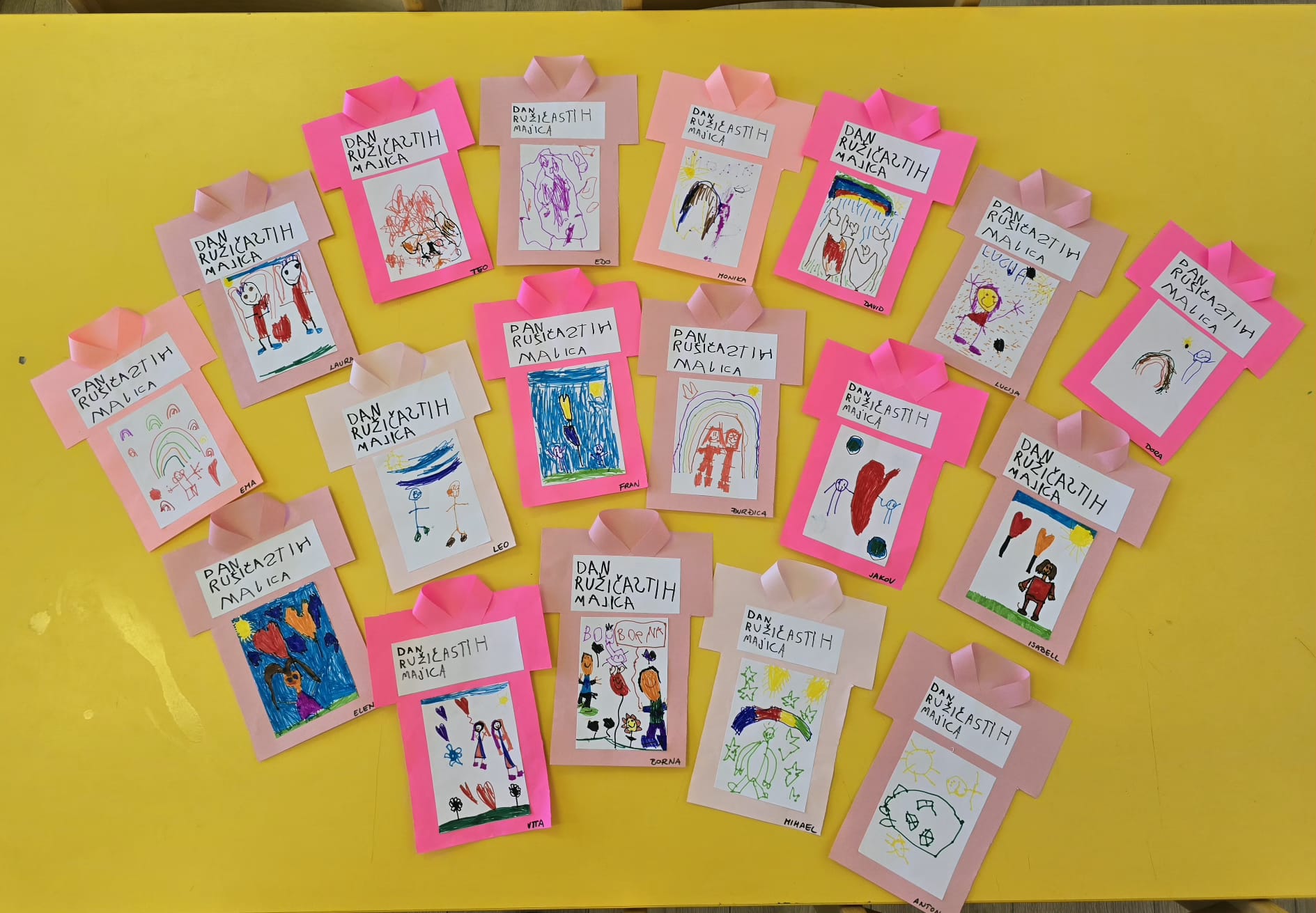 S tom porukom ružičaste majice danas su odjenuli mališani skupine Zečići iz objekta Duga te kroz likovnu aktivnost prikazali kako biti pravi prijatelj, kako pružiti podršku i kako prihvaćati drugačije od sebe.
