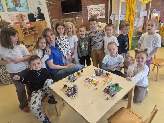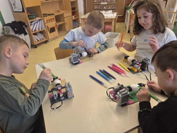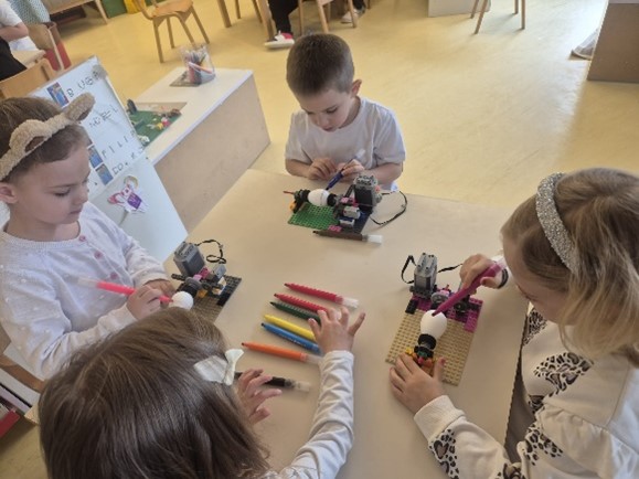 Ova aktivnost potaknula je dječju znatiželju, razvoj fine motorike, logičko razmišljanje te timsku suradnju. Djeca su aktivno sudjelovala u svim fazama – od slaganja strojeva do samog procesa ukrašavanja jaja. Radionica je protekla u veselom i poticajnom ozračju, a osmijesi na dječjim licima najbolji su pokazatelj koliko su uživali u ovom jedinstvenom iskustvu. Zahvaljujemo teti Kristini na dolasku i radujemo se budućim susretima!