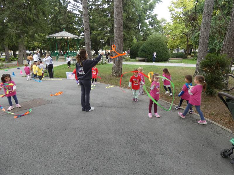 U prijepodnevu ispunjenom kretanjem, vježbanjem i druženjem, pridružili su im se: 3.a razred i Odjeli djece s teškoćama u razvoju Osnovne škole Dragutina Tadijanovića, petrinjski gimnazijalci, učitelji i učiteljice te prolaznici koji su se zatekli u parku. Stručni tim našeg vrtića: ravnateljica Jasna Mikulić, pedagoginja Višnja Vukša i zdravstvena voditeljica Ivana Ćuk, također su sudjelovanjem u ovoj aktivnosti podržali svoje male vrtićance u obilježavanju Europskog tjedna sporta. U organizaciji i provođenju vježbi razgibavanja i svladavanja različitih zadataka složenih u poligon prepreka kroz park, pomogla im je trenerica Gimnastičkog kluba Petrinja, Gordana Žugaj Jambrović, koja se uvijek odazove pozivu Kornjačica na sportske događaje. Nadamo se da smo svojim primjerom našim sugrađanima ukazali na važnost tjelesne aktivnosti za zdravlje i povećanje otpornosti i funkcionalnosti organizma.