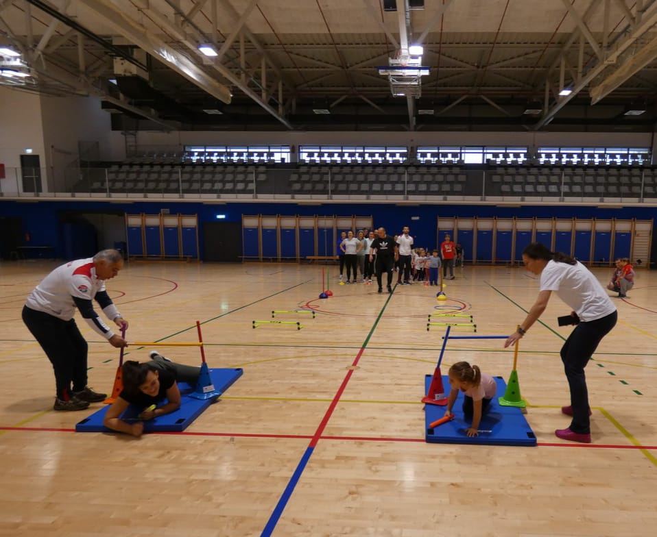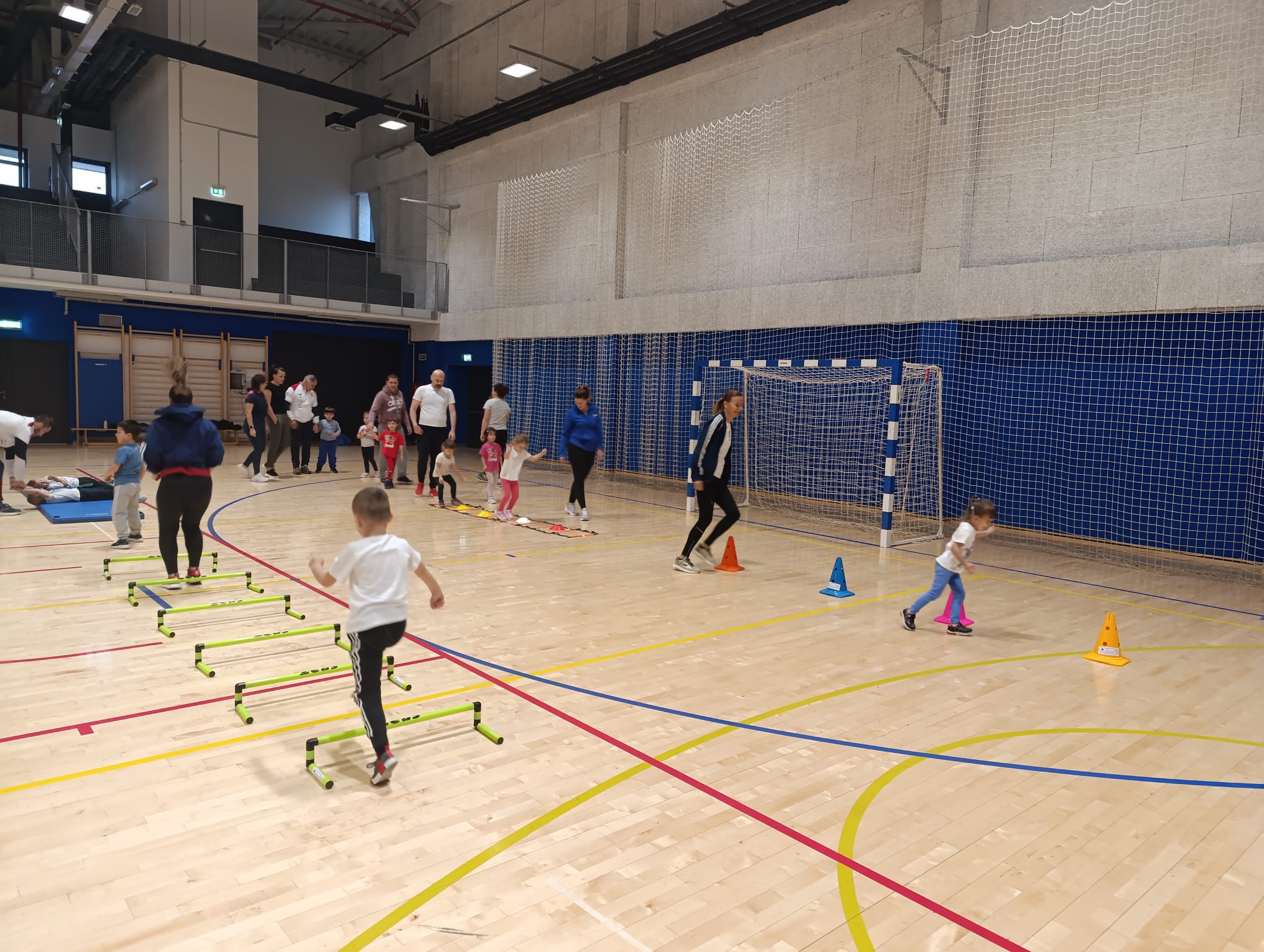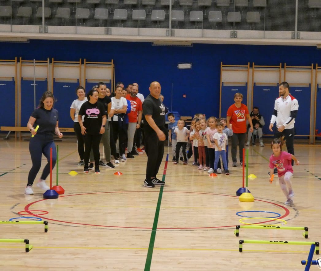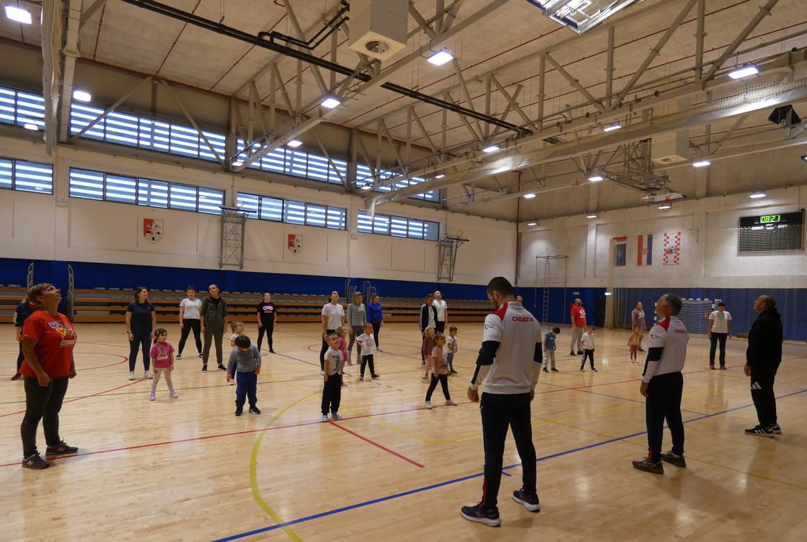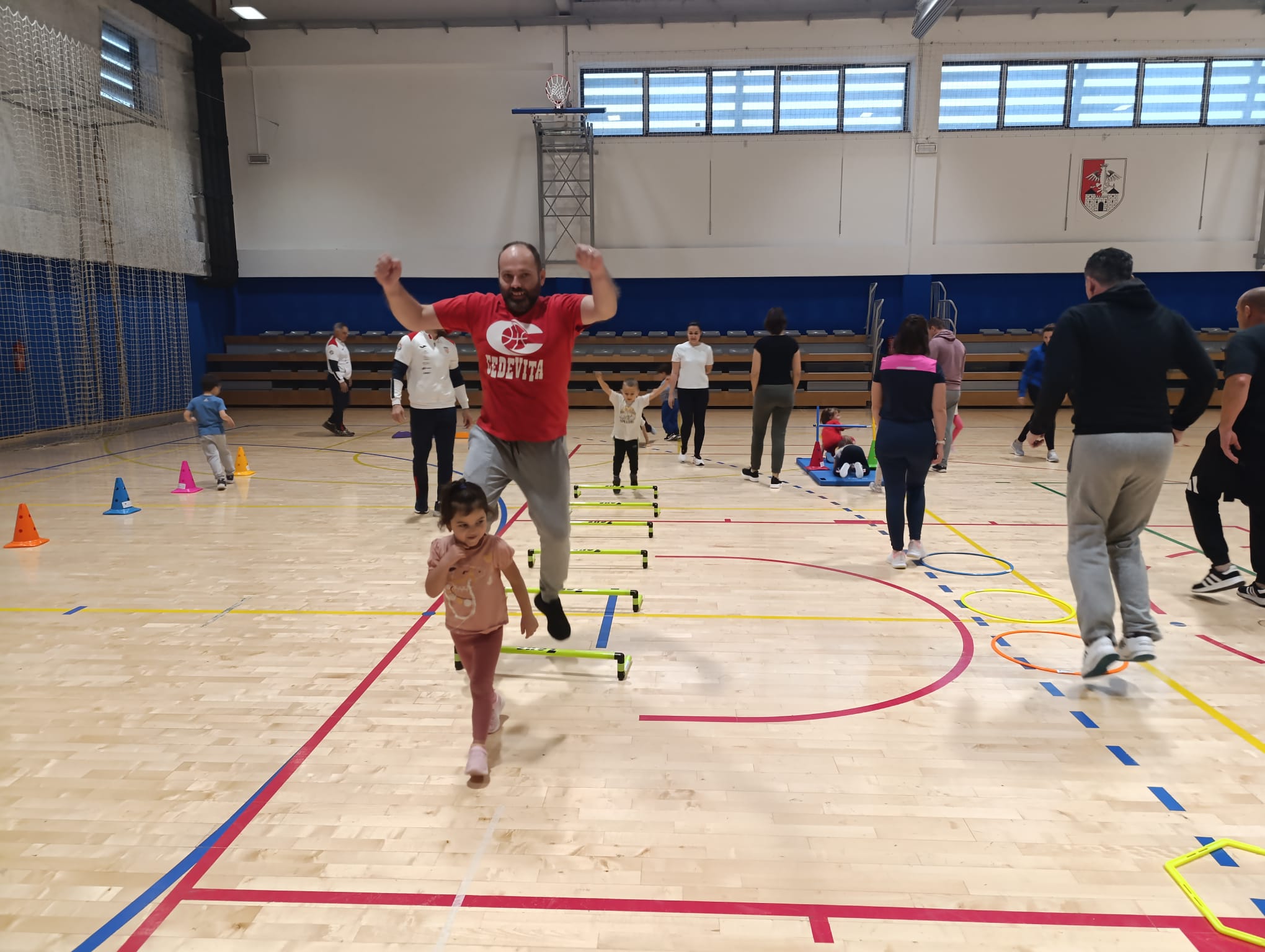 Trener Vinko upoznao je sve prisutne i s Karlom Kodrićem kojem je trener, a koji je nedavno na Svjetskom prvenstvu održanom u Zagrebu osvojio brončanu medalju koju je donio i pokazao svima koji su vježbali u dvorani. Nakon upoznavanja, trojica hrvača, započela su trening s okupljenom djecom i roditeljima. Najprije su se svi dobro razgibali uz vježbe za zagrijavanje, potom su svladavali poligon prepreka koji je sadržavao različite motoričke zadatke. Natjecateljskom štafetnom igrom u kojoj su se djeca natjecala protiv roditelja, trening je završio. Naravno pogađate, djeca su pobijedila, što ne začuđuje, jer Kornjačice svaki petak aktivno vježbaju sa svojim odgojiteljcama Anabelom Kunert i Majom Latin. Kao sjećanje na ovaj nezaboravan dan, koji je bio ispunjen zajedničkim vježbanjem i druženjem, djeca su predala hrvačkom trojcu zahvalnice i medalje zlatnog sjaja koje su za njih izradili.