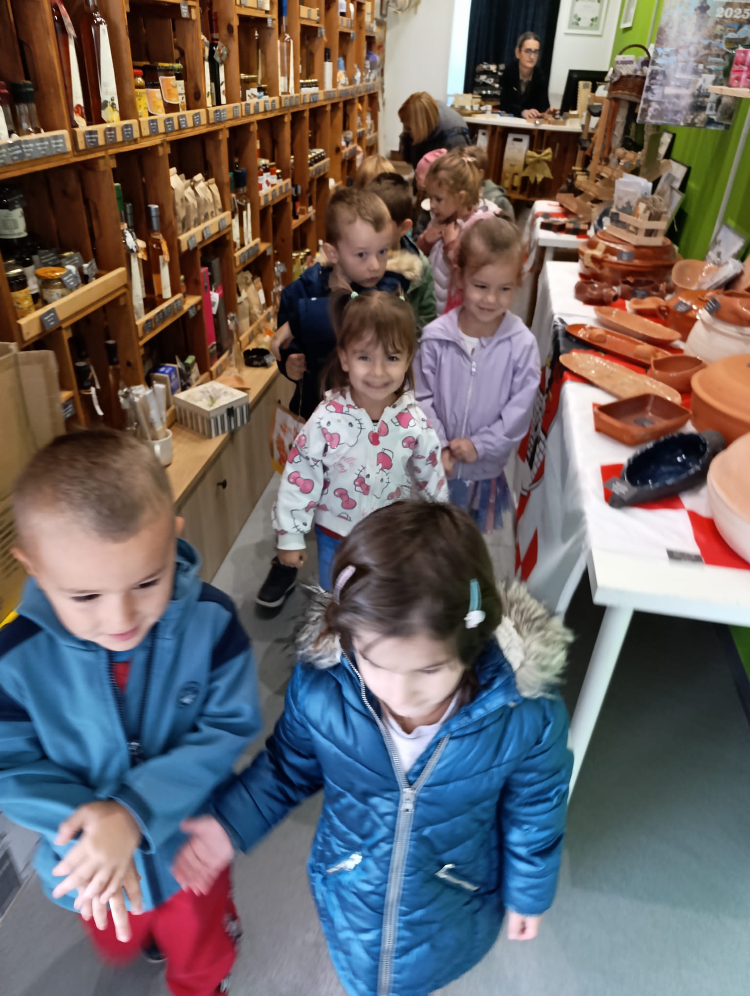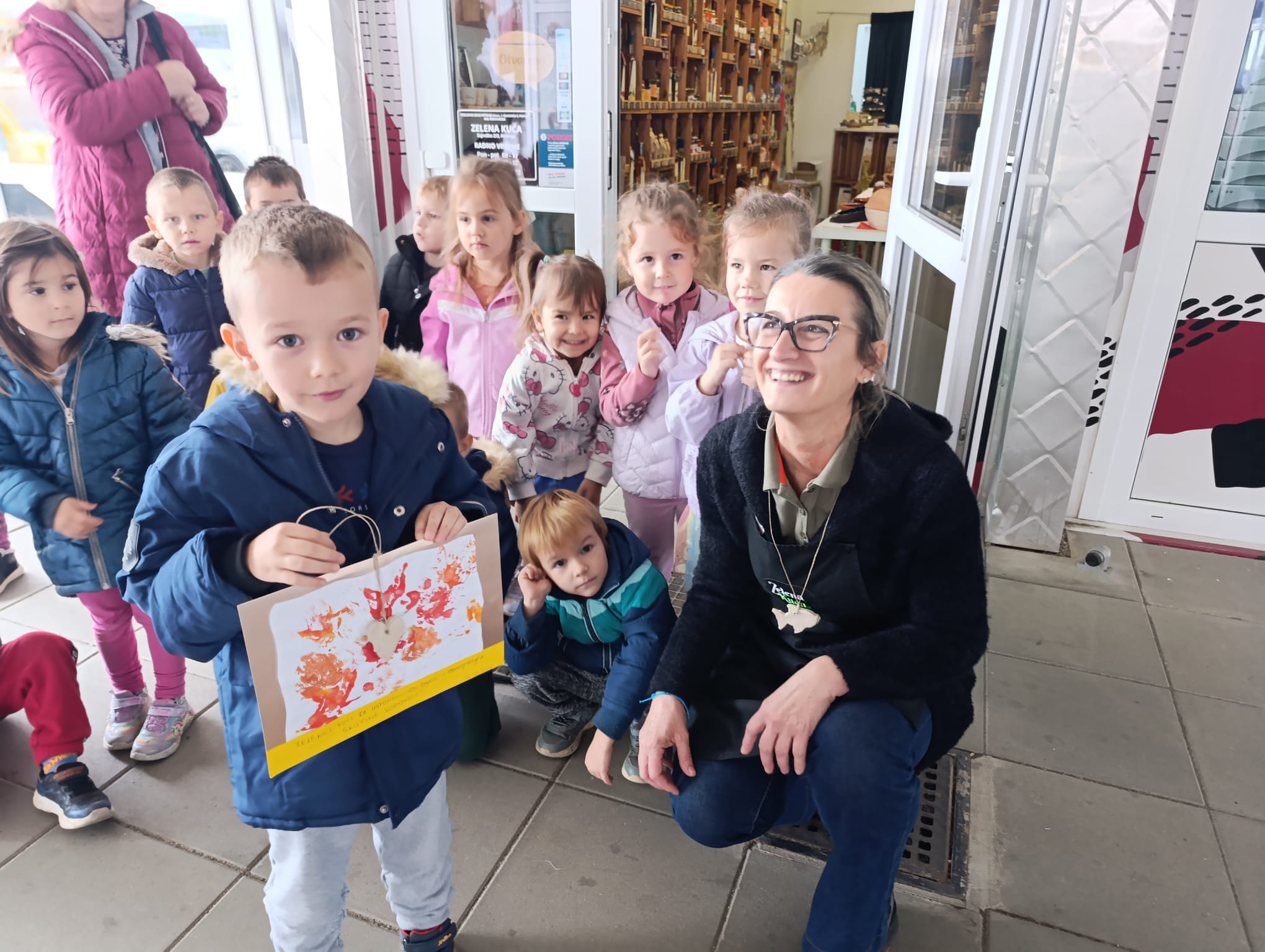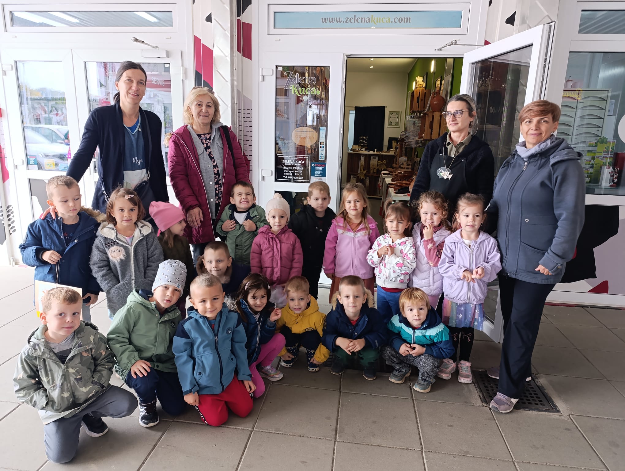 A kako bi djeca skupine proširila svoja znanja o tome što je to suvenirnica, i koje suvenire u našoj petrinjskoj suvenirnici možemo pronaći, male Kornjačice u pratnji svojih odgojiteljica Anabele Kunert i Maje Latin, pedagoginje Višnje Vukše i asistentice Nade Barić, posjetile su u ponedjeljak 20. listopada, Zelenu kuću. Tamo su saznale da su prva vrtićka skupina koja ih je posjetila. Za posjeta su uočile da se tamo mogu kupiti magneti s petrinjskim motivima, glineno posuđe, među kojima se nalazi simbol Petrinje, stucka, raznovrsni nakiti, i sl. Na kraju posjeta predali su djelatnici Zelene kuće, svoju zahvalnicu i ogrlicu iz vlastite proizvodnje. Sada u sklopu jesenskih aktivnost pripremaju jesensku ponudu, gdje će poduzetne Kornjačice ponuditi ježiće od češera, svijećnjake od gline, ukrasne gljive i sl. Nakon jesenske ponude, poduzetne Kornjačice, zajednički će se dogovoriti što će od prikupljenog novca kupiti. Zasad im je želja ići na kazališnu predstavu u Zagreb, kupiti padobran kakav ima teta Pina… ali što će na kraju i kupiti, Kornjačice će se još dogovoriti.