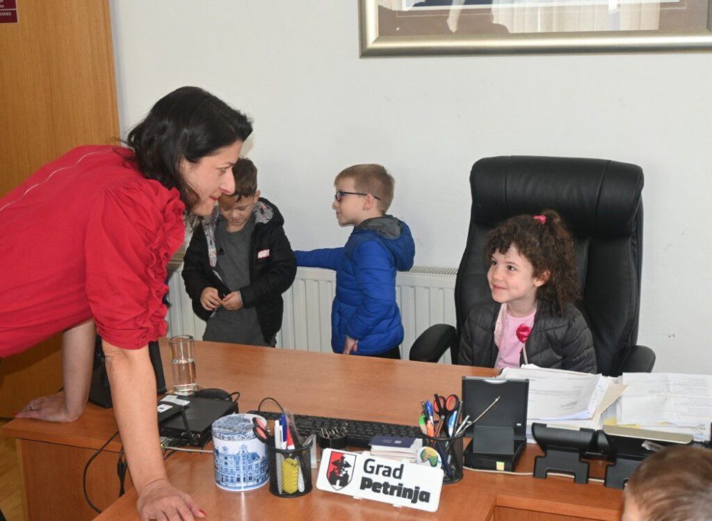Bubamare su posjetile i ured gradonačelnice, gdje su imali priliku vidjeti kako izgleda njezino radno mjesto, postavljati pitanja i podijeliti svoje želje. Na pitanje što bi voljeli da Petrinja ima, djeca su s puno mašte i osmijeha poželjela nove kuće, dječja igrališta, bazen, pa čak i pravi dvorac, ali i čišći grad, u kojem svi brinu o okolišu. Gradonačelnica ih je pažljivo saslušala i zahvalila im na iskrenim i toplim porukama koje su joj predali u obliku rukom izrađenih poklona i crteža. Na kraju su gradonačelnici uručene mape, odnosno crteži želja, među kojima su najspominjanije bazen i igrališta, a neki su se, u njezinom uredu, okušali i u zamijenjenim ulogama i već sada pokazali kojom ozbiljnošću bi obnašali tu odgovornu funkciju.