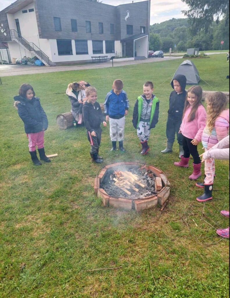 Tjedan nakon, 21. i 22. svibnja 2025. godine, na izlet u Prnjavor Čuntićki uputili su se i naši Zmajići iz objekta Izvor. Veselo su doletjeli do ekološkog centra, raspakirali svoje stvari i pripremili se na aktivnosti koje su osmislili djelatnici centra. Vrijedni izviđači tražili su blago koje je sakrio zmaj, a nakon potrage za blagom podigli su šator. Kao pravi izletnici u prirodi, naši Zmajići su upalili logorsku vatru i na njoj ispekli kobasice koje su u slast pojeli. Nakon zanimljivog dana uslijedilo je zajedničko gledanje crtića prije spavanja.