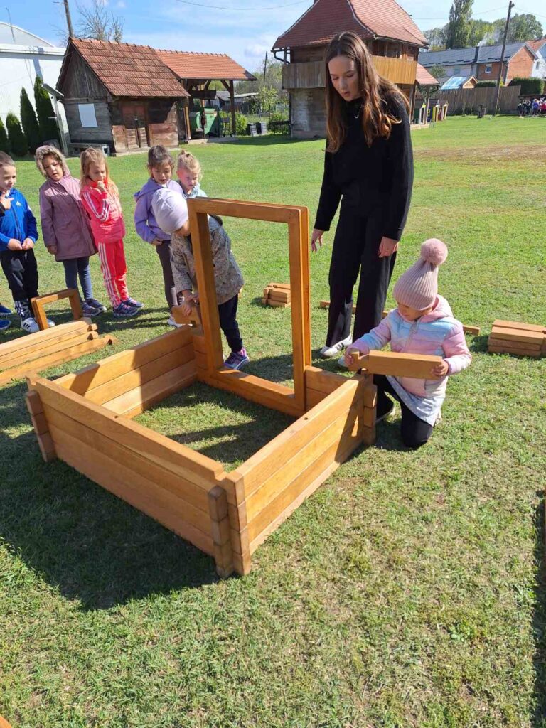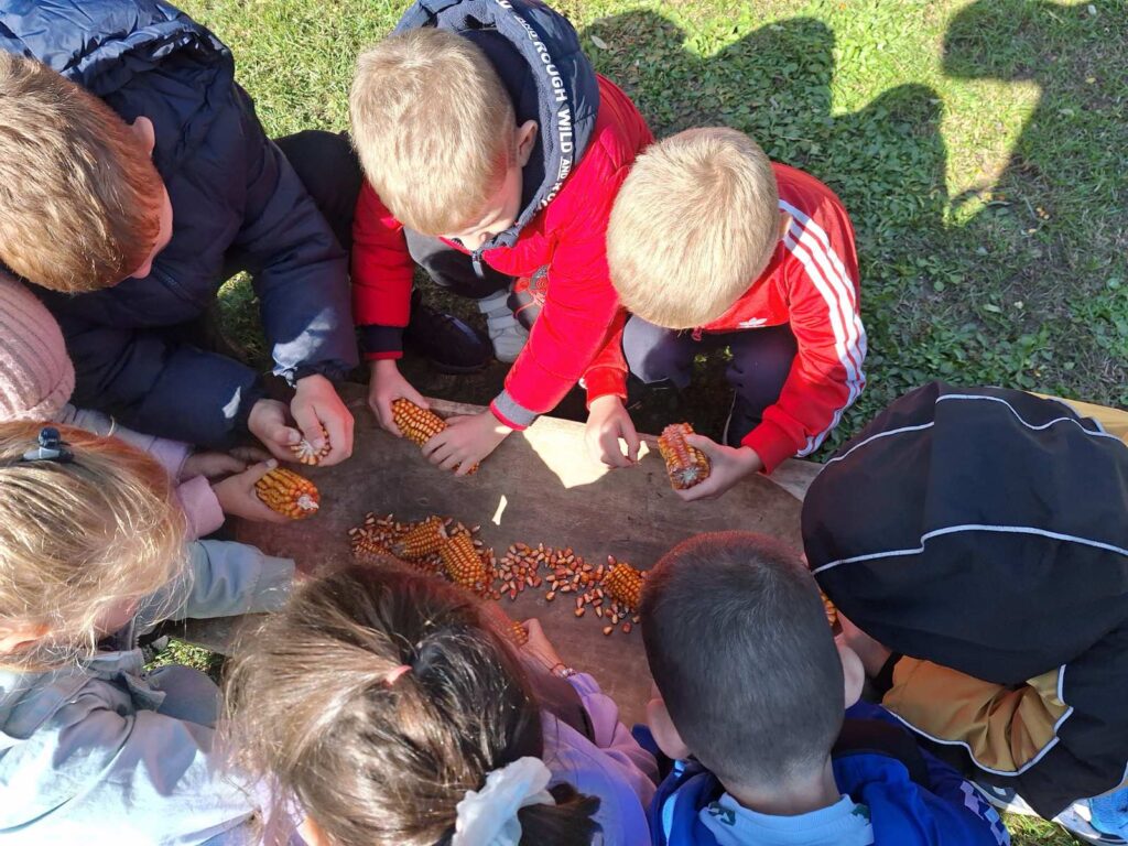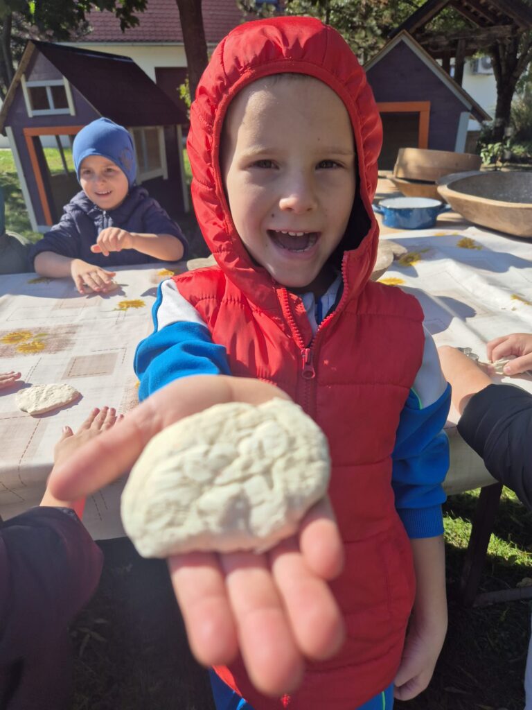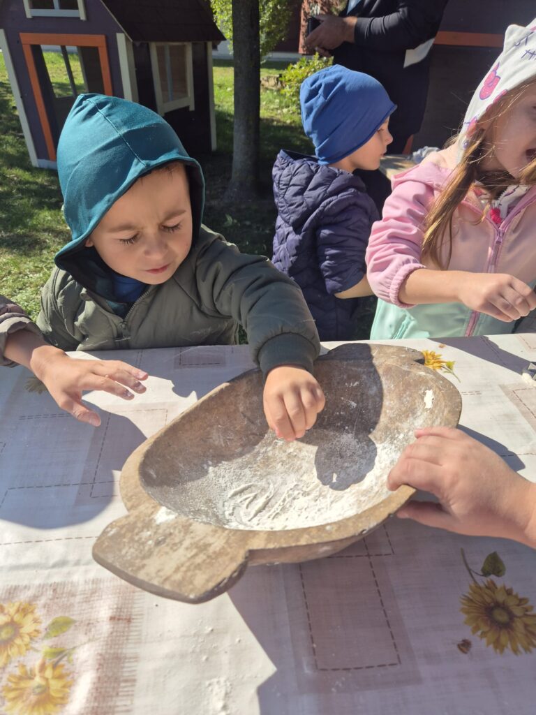 A onda smo se i uhvatili posla, ponovno na onaj stari, provjereni način. Kukuruzi nam nisu strani, pa samo ih naruljili, drvo nam je poznati materijal, pa smo sagradili kuću, a brašno i voda su dio svake naše godine u vrtiću, pa smo umijesili kruh i razne sitne kreacije! Upoznali smo se i sa strojevima koji su pomogli obrađivati zemlju, a ništa nije išlo bez dobrog starog ručnog rada, jer ipak tada traktora još nije bilo.
