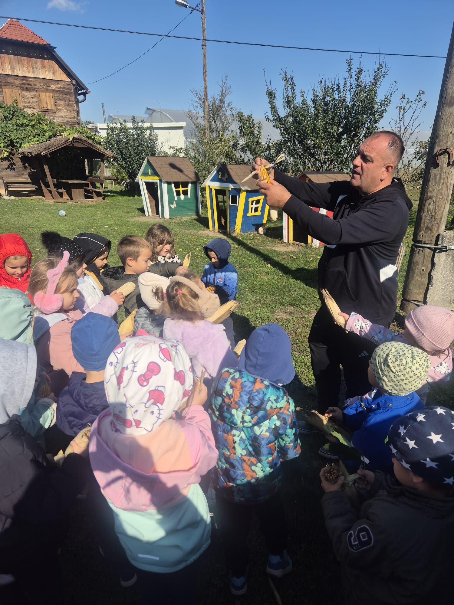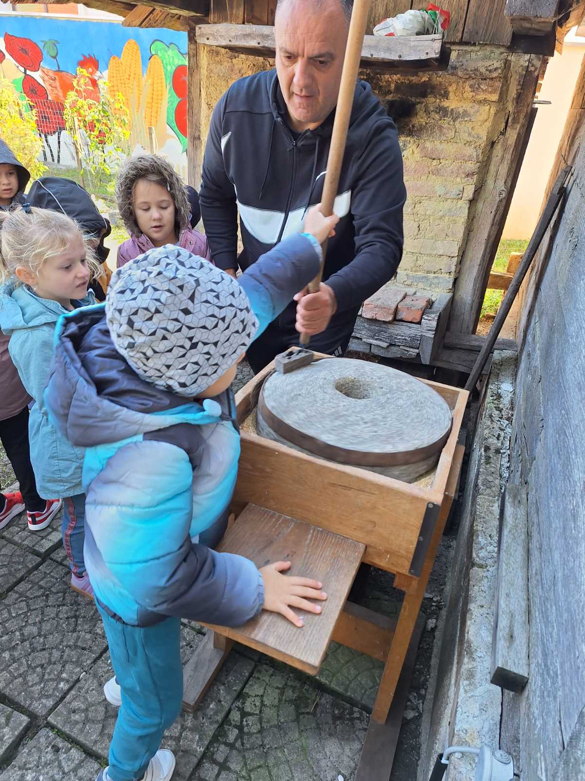 A onda smo se i uhvatili posla, ponovno na onaj stari, provjereni način. Kukuruzi nam nisu strani, pa samo ih naruljili, drvo nam je poznati materijal, pa smo sagradili kuću, a brašno i voda su dio svake naše godine u vrtiću, pa smo umijesili kruh i razne sitne kreacije! Upoznali smo se i sa strojevima koji su pomogli obrađivati zemlju, a ništa nije išlo bez dobrog starog ručnog rada, jer ipak tada traktora još nije bilo.