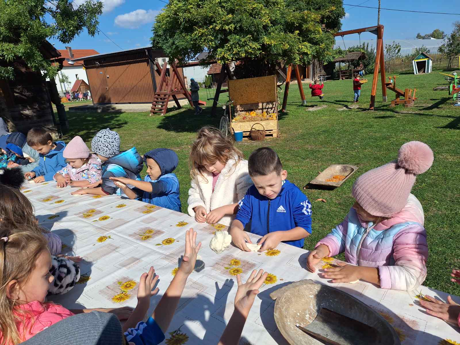 Žabice i Slonići, naše starije skupine iz objekta Izvor, su se povodom Dana kruha uputili u Etno selo Novi Čiče gdje ih je dočekala velika etno kuća u stilu baš kako su živjeli naši stari. Uz našeg stručnog vodiča naučili smo kako izgledaju i kako se koriste stari alati koji i danas nalaze svoje mjesto na polju. Vidjeli smo razne plodove zemlje koji u ovo jesensko vrijeme preplavljuju naš okoliš u uljepšavaju ovo šareno doba.