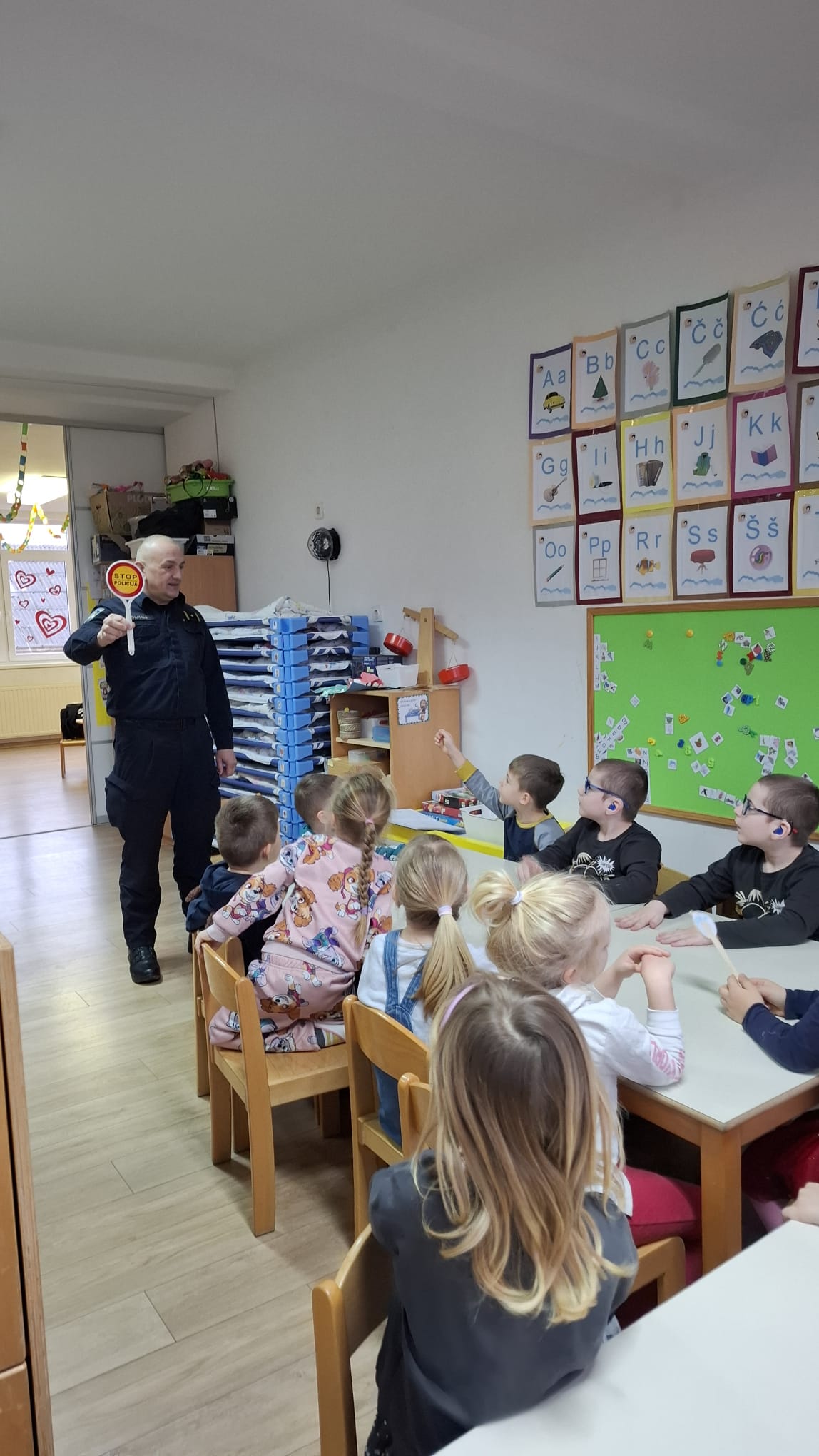 U našem vrtiću proteklih smo dana imali posebnog gosta, prometnog policajca koji je posjetio djecu u objektima Duga i Kapljica. Posjet je bio ispunjen učenjem, razgovorom i brojnim zanimljivim primjerima iz svakodnevnog života. Na početku susreta upoznali smo se s policijskim zanimanjem. Saznali smo tko je policajac i čime se bavi.