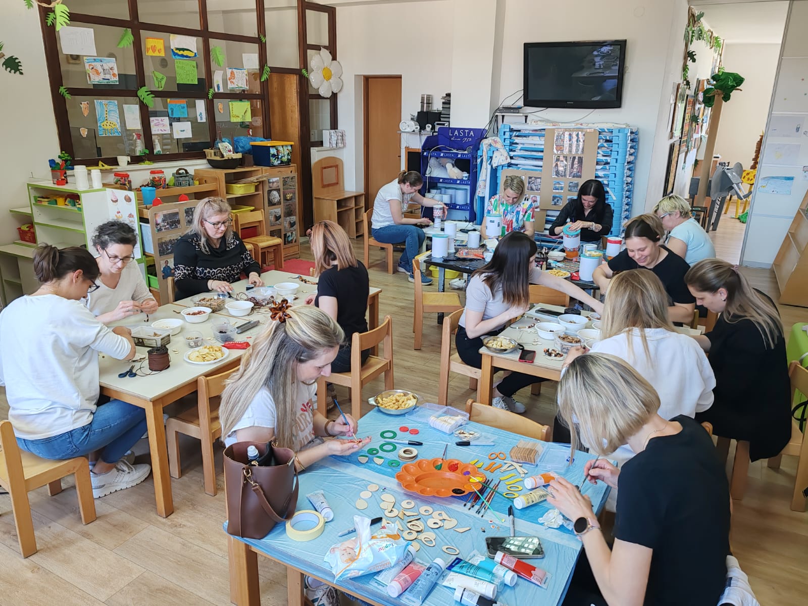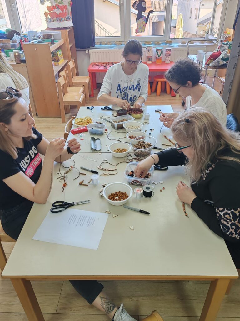 U sklopu projekta “Škole za Afriku” 29. travnja 2025. godine, održana je radionica s roditeljima skupine “Tratinčice”. Roditelji su marljivo izrađivali i ukrašavali nakit, privjeske i bubnjeve s afričkim motivima, uzorcima i bojama.