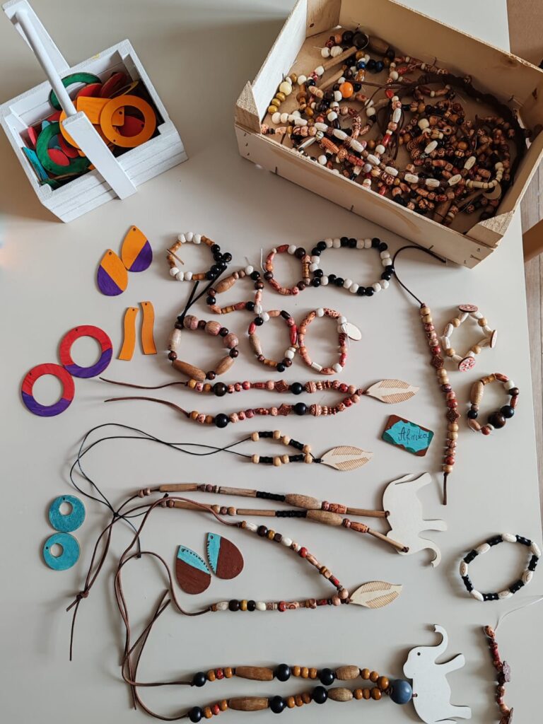 Za ogrlice i narukvice roditeljima su ponuđene drvene perlice raznih oblika i nijansi zemljanih tonova te špagice za nizanje. Za drvene naušnice i privjeske ponuđene su im akrilne boje kojima su ih ukrašavali. Bubnjevi su napravljeni od posuda koje su prethodno kaširane bijelim papirom. Roditeljima su ponuđene akrilne boje te razni materijali s afričkim uzorcima kojima su ih ukrašavali. Svi prisutni iskazali su svoju maštovitost, spretnost i kreativnost.