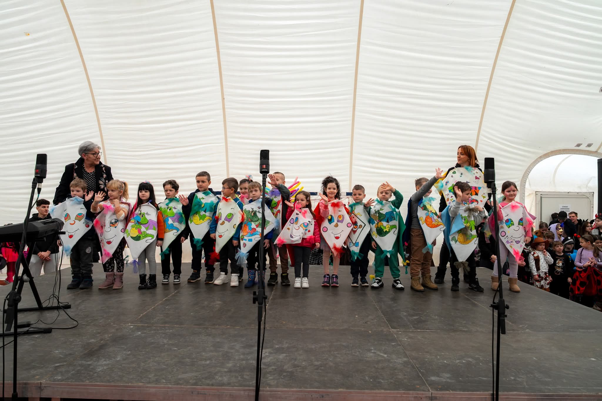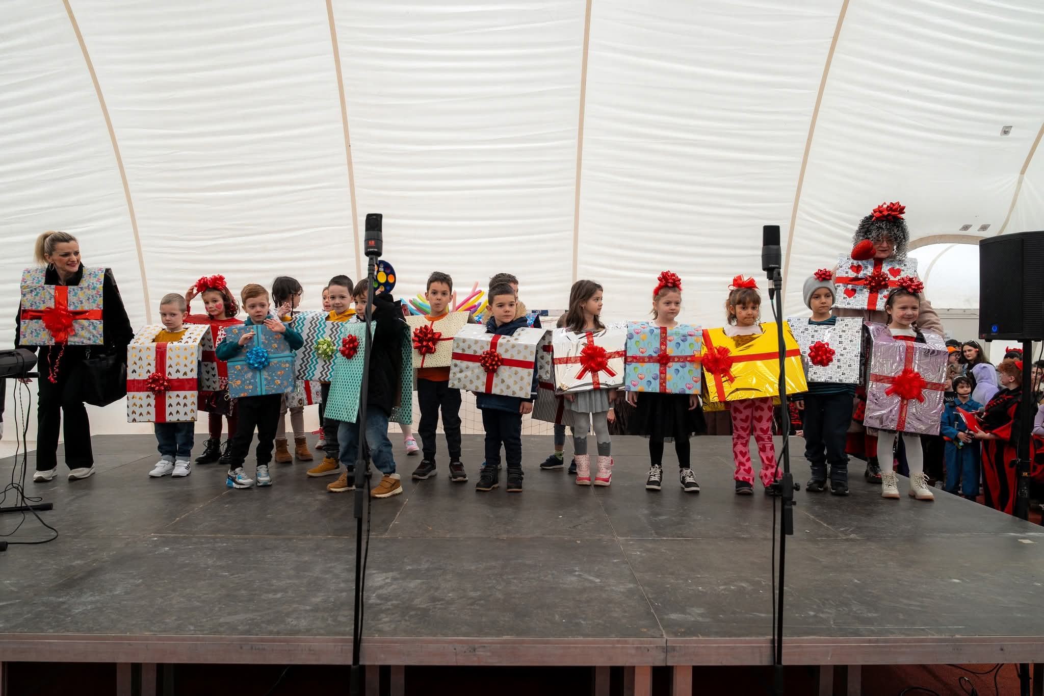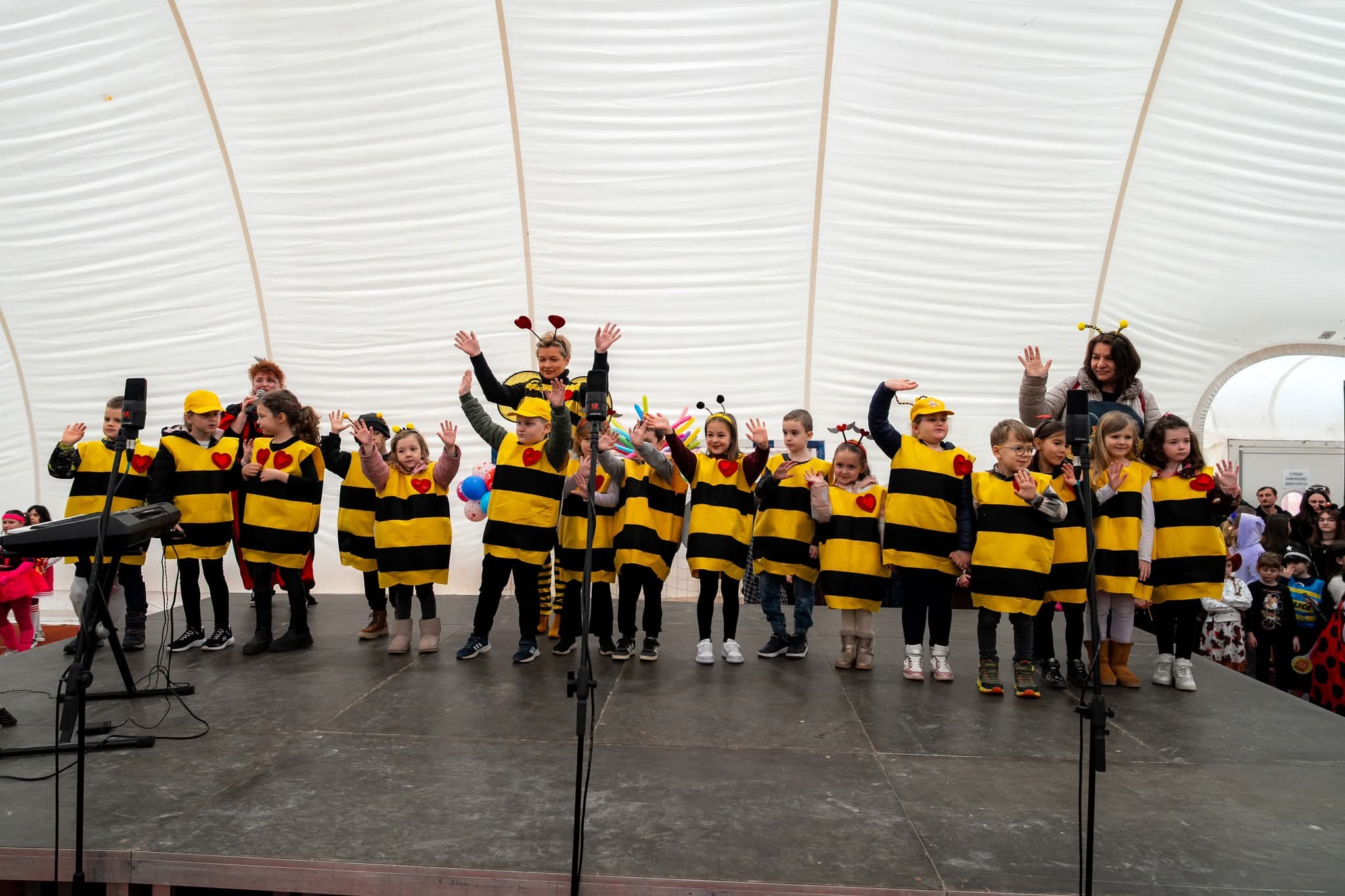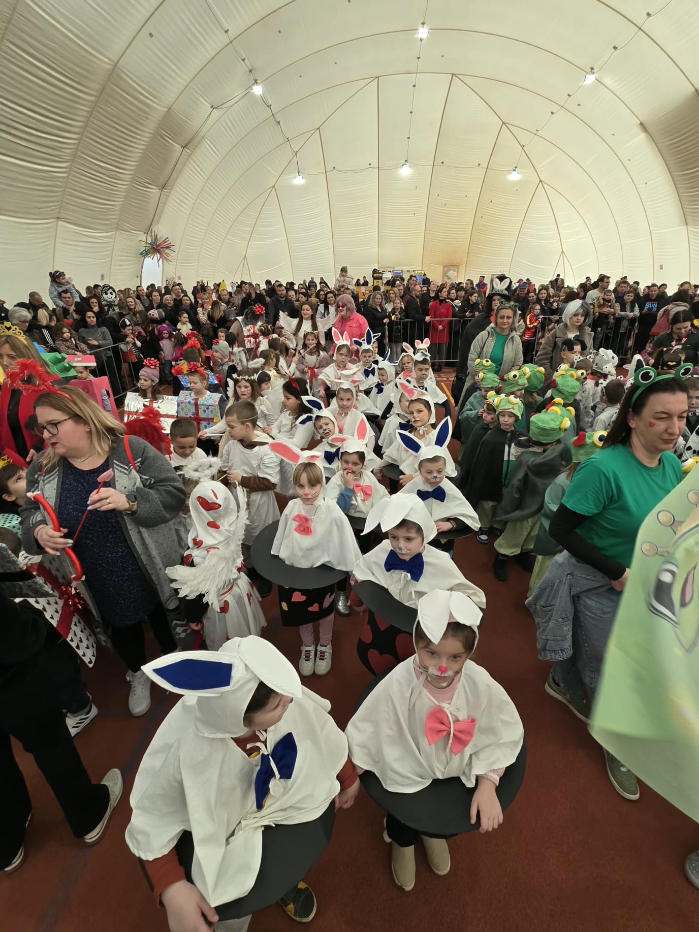 Mašta je i ove godine bila na visokoj razini! Dvoranom su prošetale šarene lego kockice, kraljevi i kraljice srca, veseli pokloni i razigrani Kupidi, zatim umiljati zečići i žabice, simpatični dalmatineri, zmajevi, vrijedne pčelice i srca. Šarenilo kostima pretvorilo je dvoranu u pravu bajku punu boja, smijeha i dobre energije.