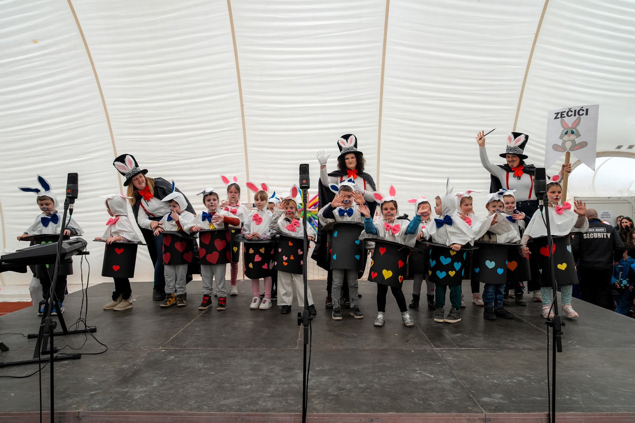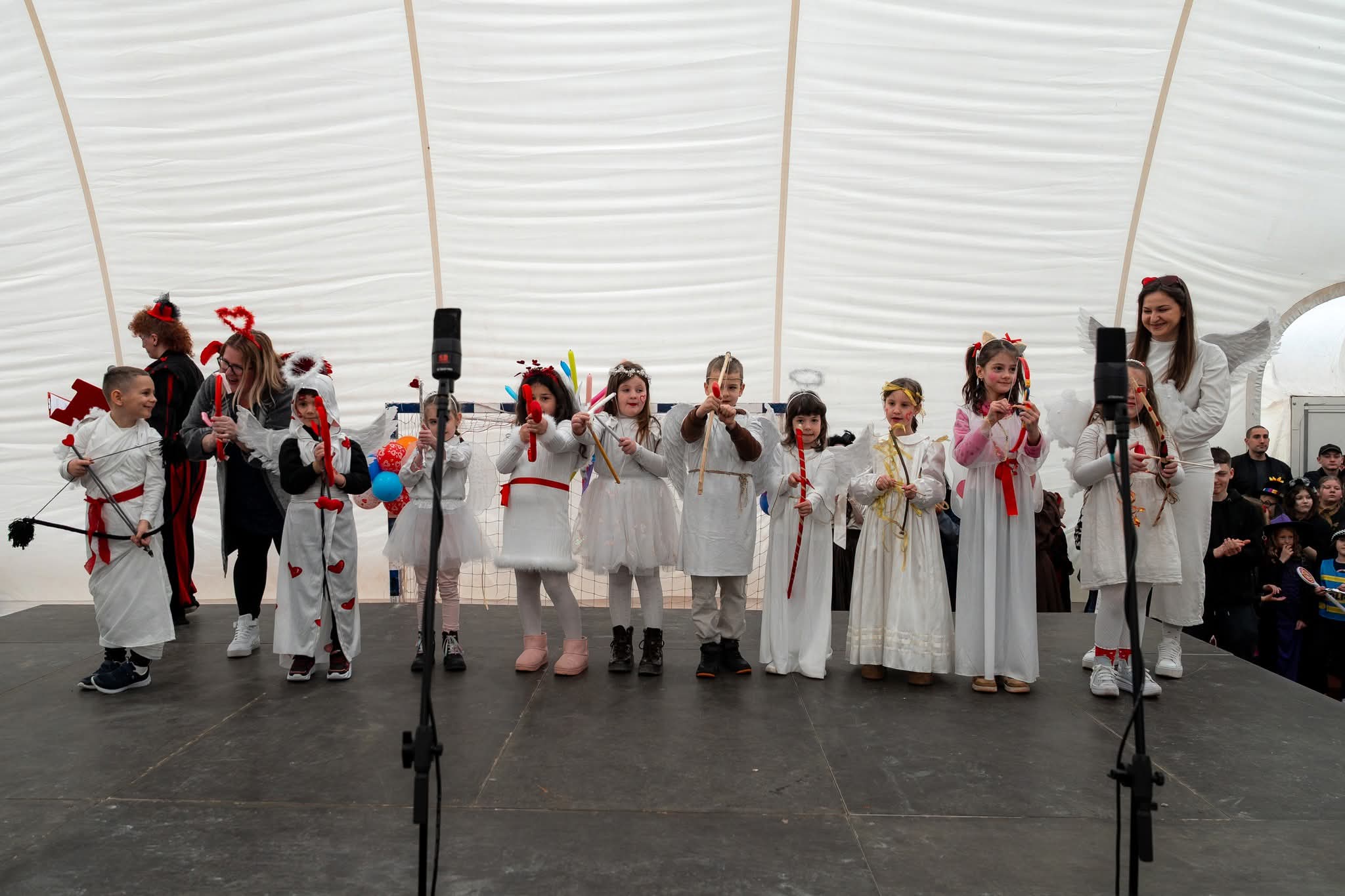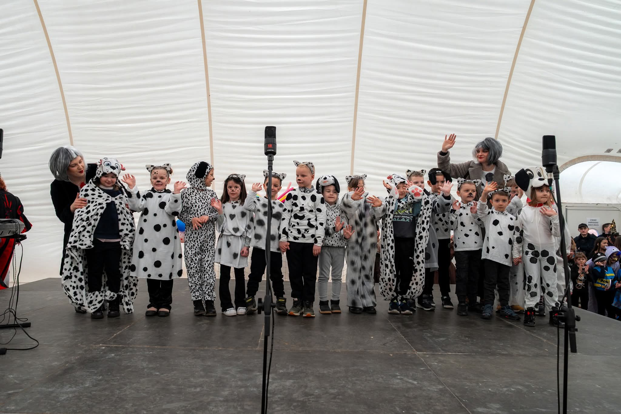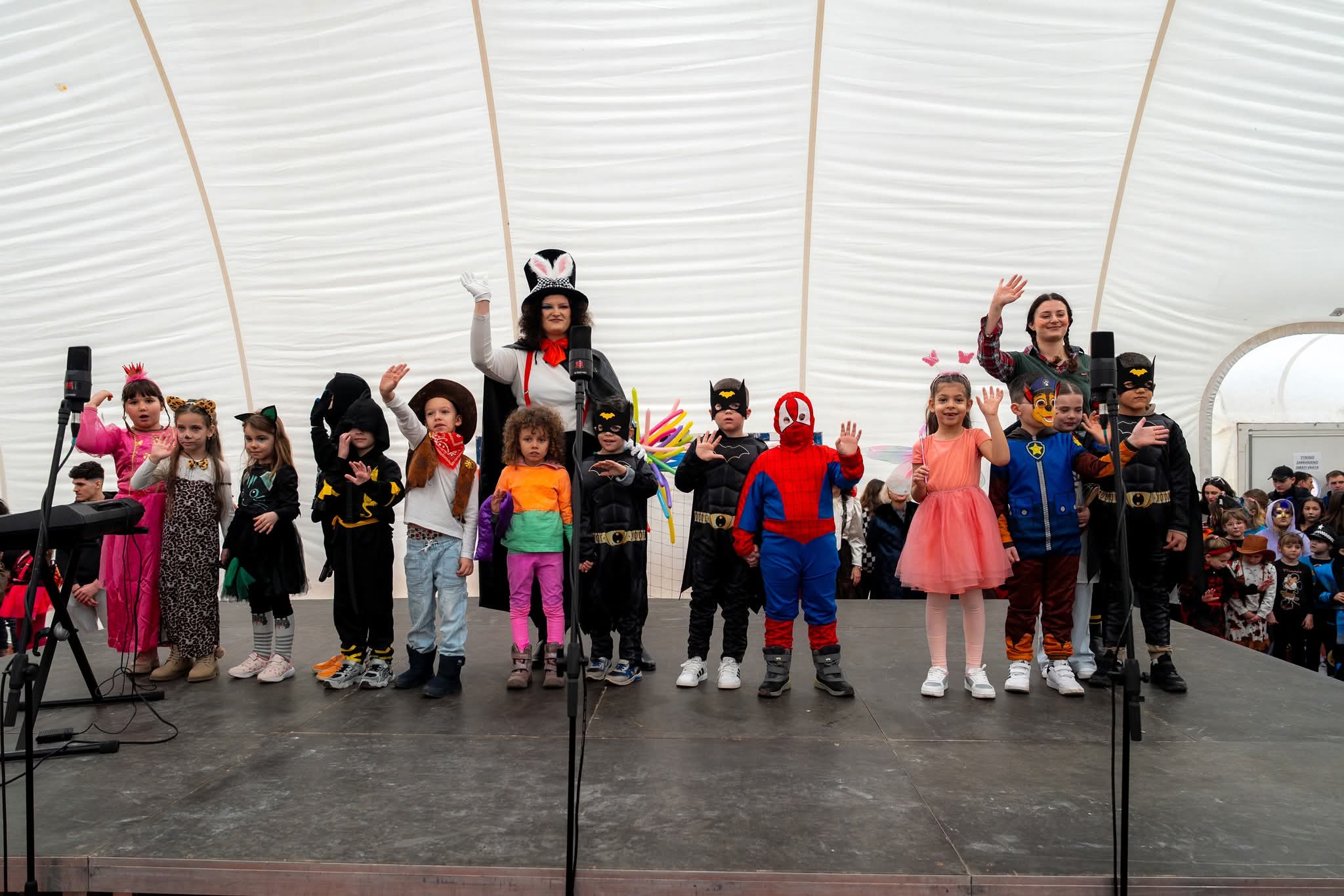 Mašta je i ove godine bila na visokoj razini! Dvoranom su prošetale šarene lego kockice, kraljevi i kraljice srca, veseli pokloni i razigrani Kupidi, zatim umiljati zečići i žabice, simpatični dalmatineri, zmajevi, vrijedne pčelice i srca. Šarenilo kostima pretvorilo je dvoranu u pravu bajku punu boja, smijeha i dobre energije.