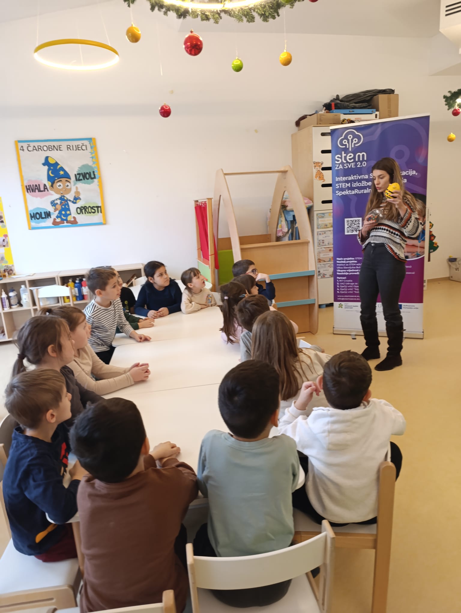 Kod naših Tigrića, 15. siječanj je bio puno više o uobičajenog dana u vrtiću. Naime, kod njih se održao SpektaRuralni STEM dan, niz radionica u organizaciji Udruge Institut za STEM edukaciju i afterschool programe. Ove radionice održavaju se diljem Lijepe naše u sklopu projekta STEM za sve 2.0 te su potpuno besplatne. Cilj radionica bio je pokazati kako STEM može biti zanimljiv, zabavan i dostupan svima. Naši mališani uživali su u osnovama programiranja i računanja, a ono što im je svakako bilo najzanimljivije je bilo druženje s robotima različite veličine, izgleda i funkcija. Hvala STEM edukatorima koji su oduševili naše Tigriće te koji su kod njih probudili itekakvu zainteresiranost za STEM područja.