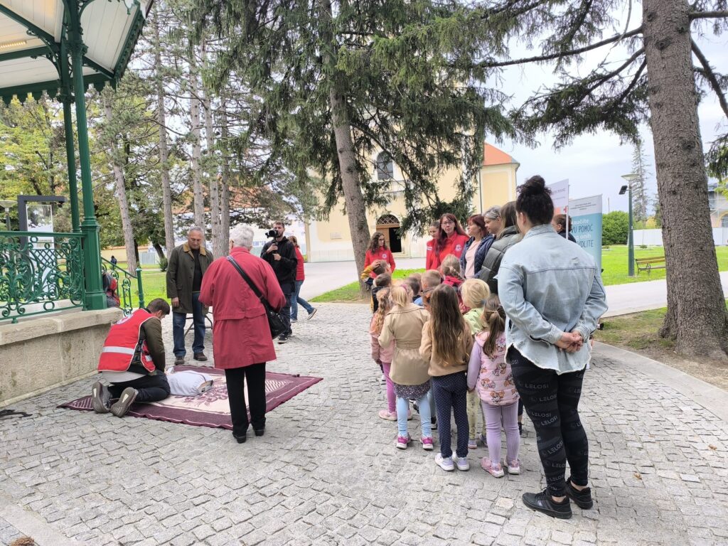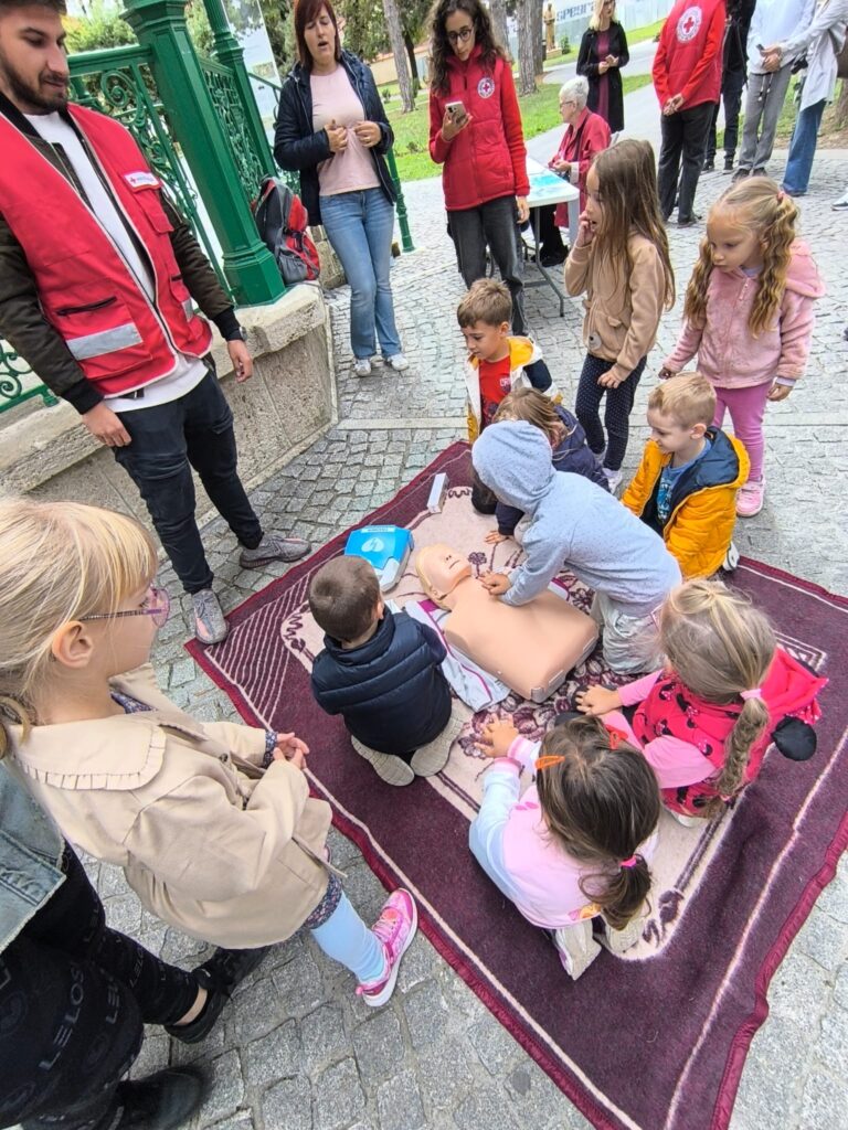 U utorak, 30. rujna 2025. godine, naša skupina Zečići iz objekta Duga imali je priliku sudjelovati u zanimljivom i edukativnom događanju koje je u gradskom parku organizirao Hrvatski Crveni križ. Djeca su se uključila u niz različitih aktivnosti kroz koje su učila o pružanju prve pomoći na njima prilagođen i vrlo zanimljiv način. Posebno su ih oduševile simulacije reanimacije te Heimlichov zahvat, u kojima su pokazala veliku znatiželju i hrabrost. Naši mali Zečići s lakoćom su prihvatili ulogu malih pomagača te su uz puno smijeha i truda savladavali osnovne pokrete.