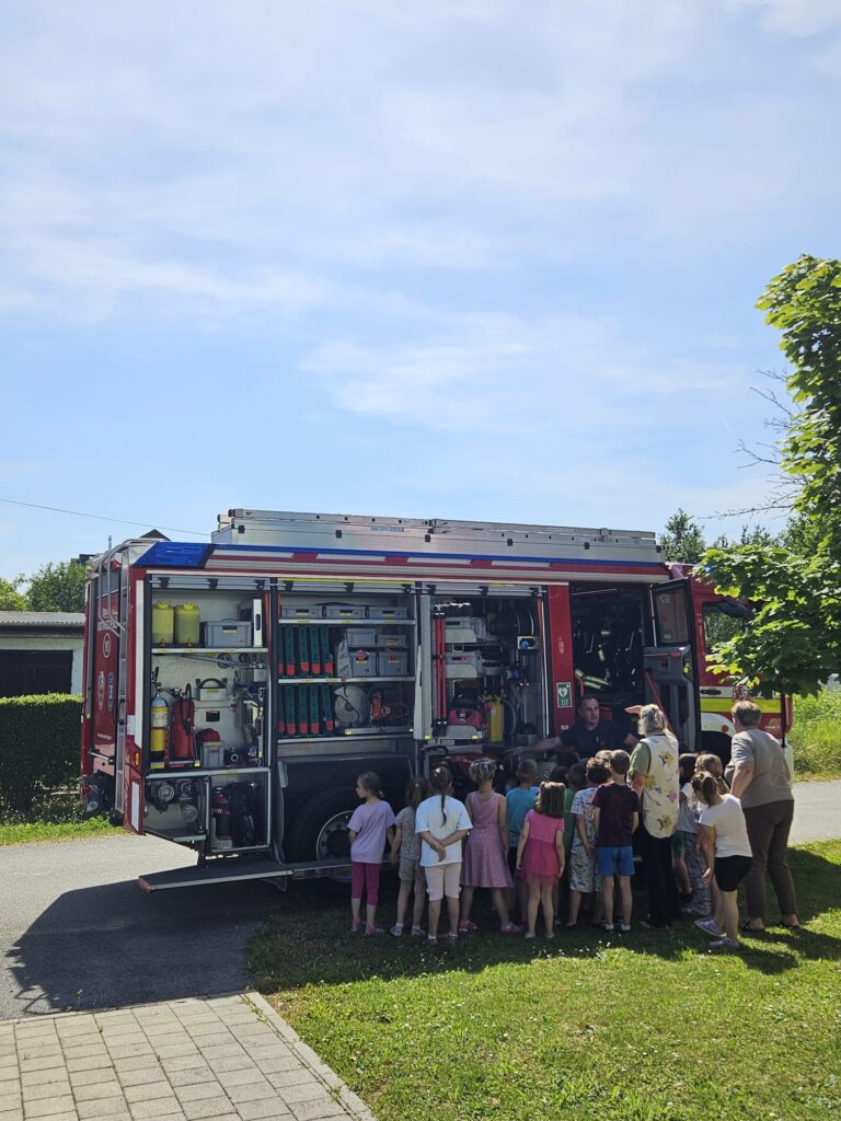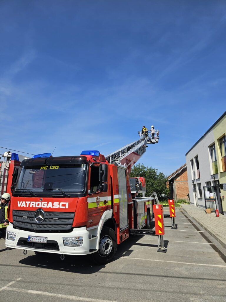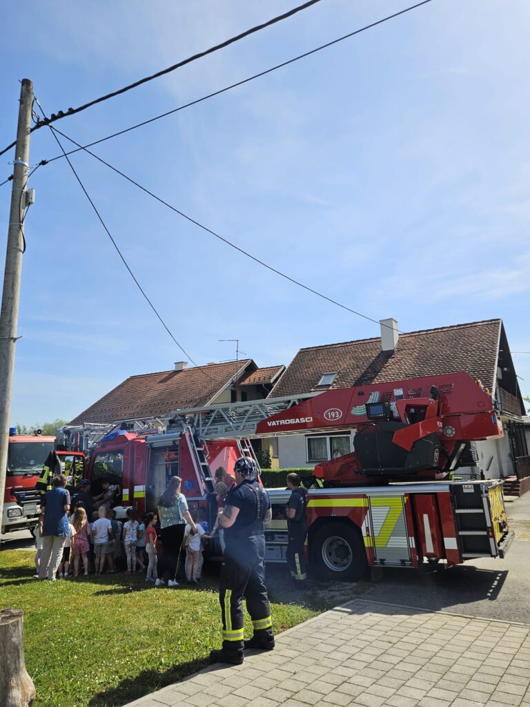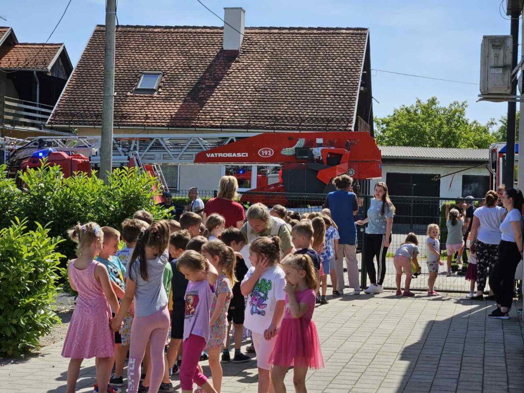 Nakon uspješno provedene vježbe djeca su imala priliku zajedno s vatrogascima istražiti vatrogasna vozila.