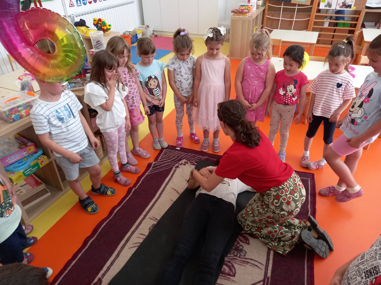 U srijedu, 4. lipnja 2025. godine, u objektu Sunce održana je vježba evakuacije, spašavanja i gašenja požara, u suradnji s Javnom vatrogasnom postrojbom Grada Petrinje. Vježba je započela u 9:30 sati simulacijom požara u kotlovnici, a vatrogasna služba odmah je pozvana na intervenciju. U kratkom vremenu sva djeca i zaposlenici vrtića evakuirani su na sigurno, na prostor u dvorištu iza objekta, gdje su im se pridružili djelatnici Crvenog križa Petrinja. Dok su vatrogasci obavljali svoje zadatke, djelatnici Crvenog križa demonstrirali su djeci i osoblju osnovne postupke pružanja pomoći unesrećenima u stvarnim izvanrednim situacijama.