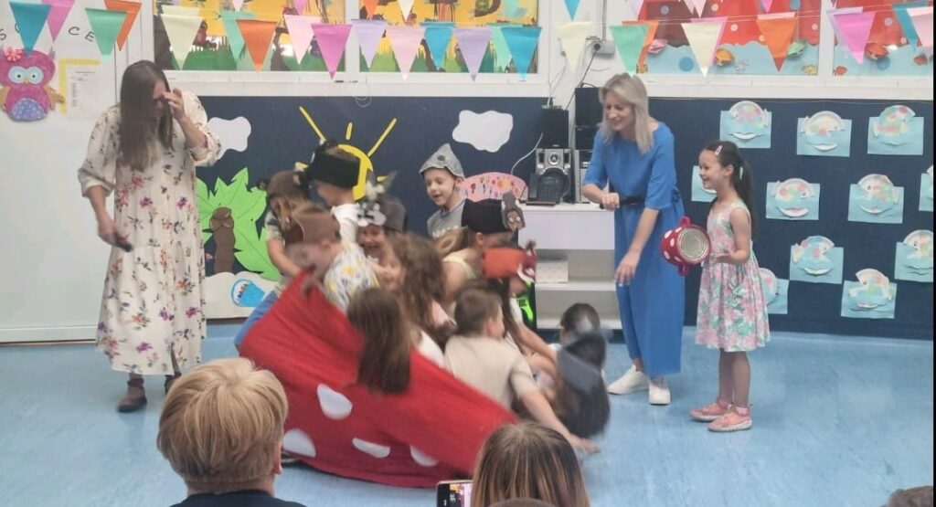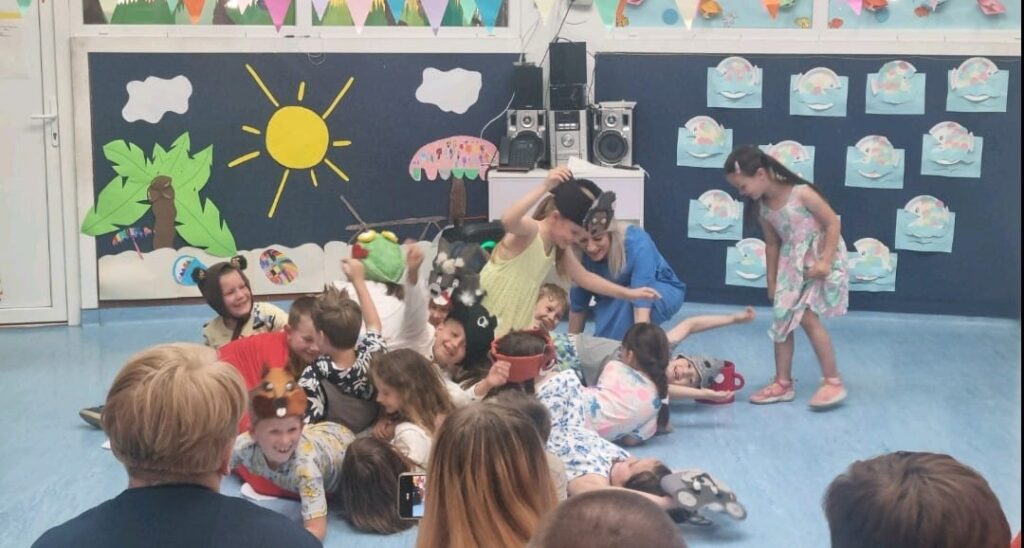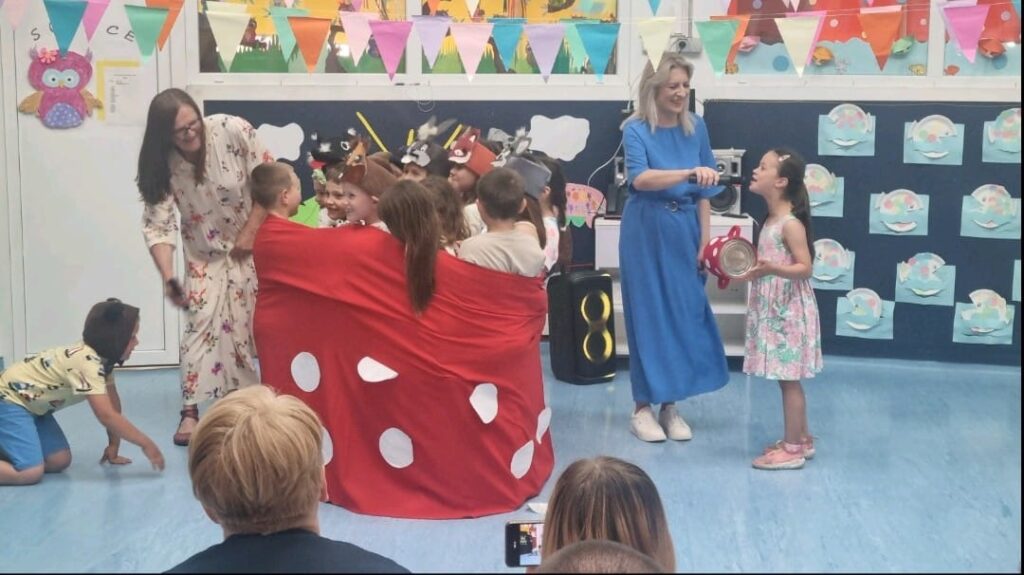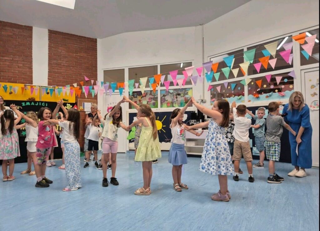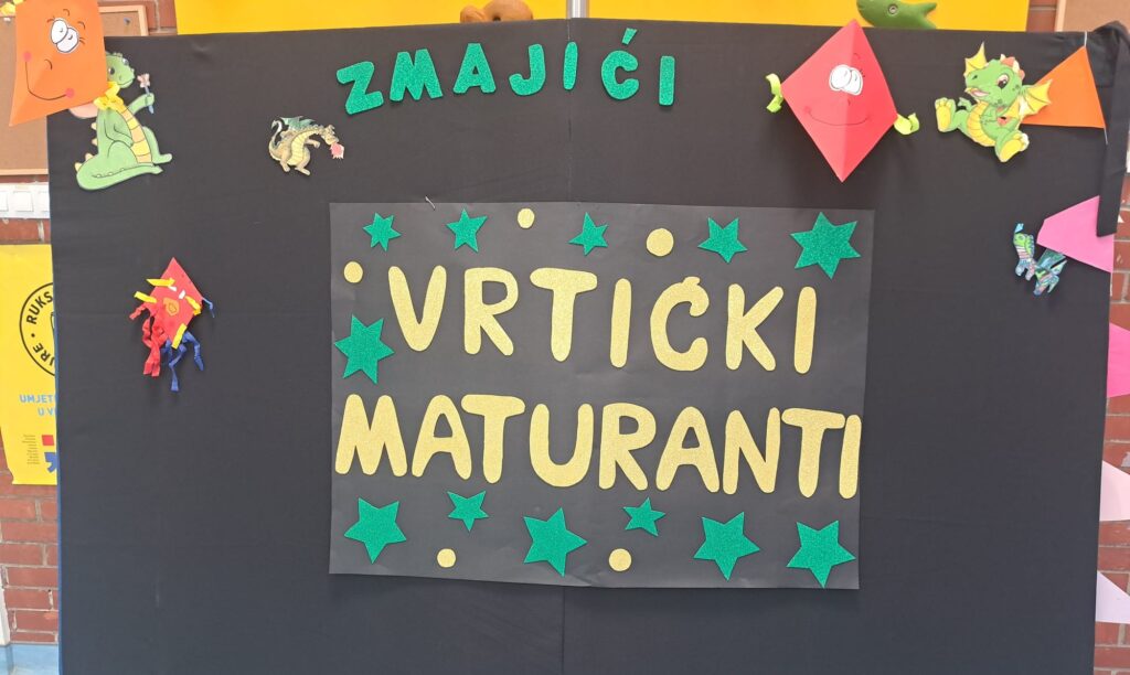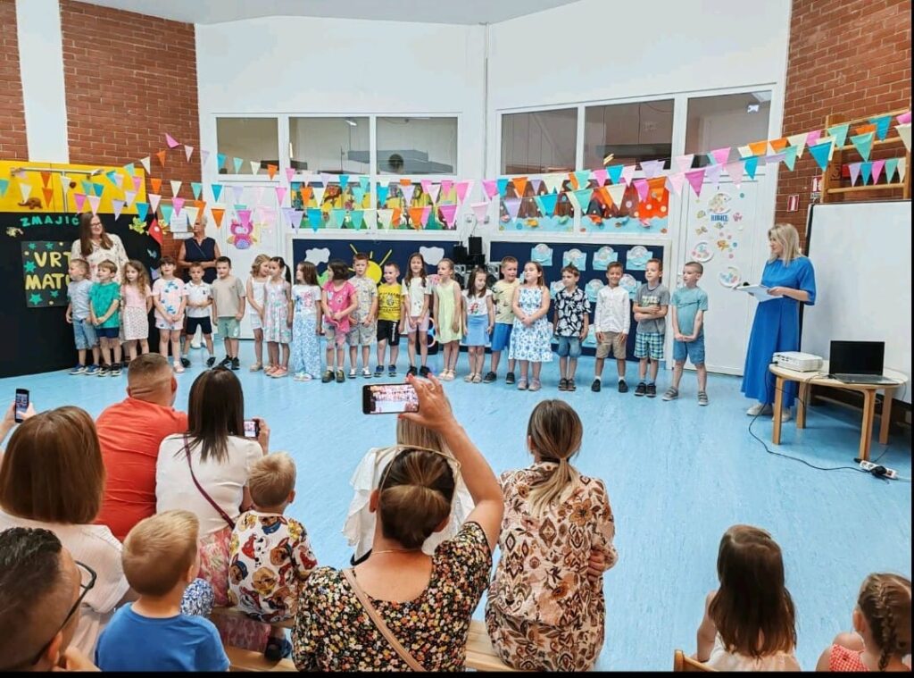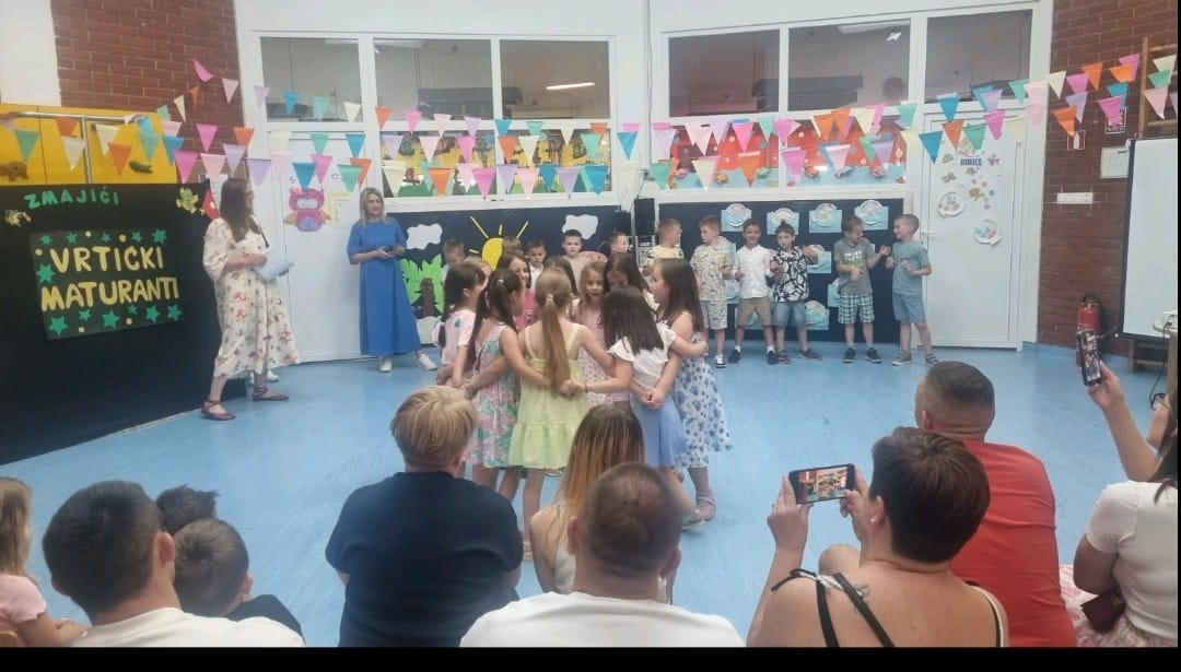 Završna svečanost bila je puna sadržaja, od igre kako napraviti slovo rukama i nogama do recitacija “Dobri prijatelji”, “Hoću biti Briljiban” i “Školsko zvono”. Zmajići su zatim zajednički otpjevali pjesmicu “Redaju se kućice”, i to bez matrice, pokazujući koliko su naučili tijekom svojih vrtićkih dana. Podsjećajući nas na ljepote našega grada, otpjevali su pjesmicu “Petrinjčica je rječica” i uz nju zaplesali. Nakon reda pjesme i plesa, uslijedio je igrokaz “Kućica” u kojem su Zmajići svojim glumačkim talentom osvojili sve prisutne. Poseban trenutak bio je kada su roditelji gledali fotografije na kojima su mogli vidjeti kako su njihova djeca rasla kroz godine, od jasličke dobi pa sve do dana kada su spremna zakoračiti u školu.